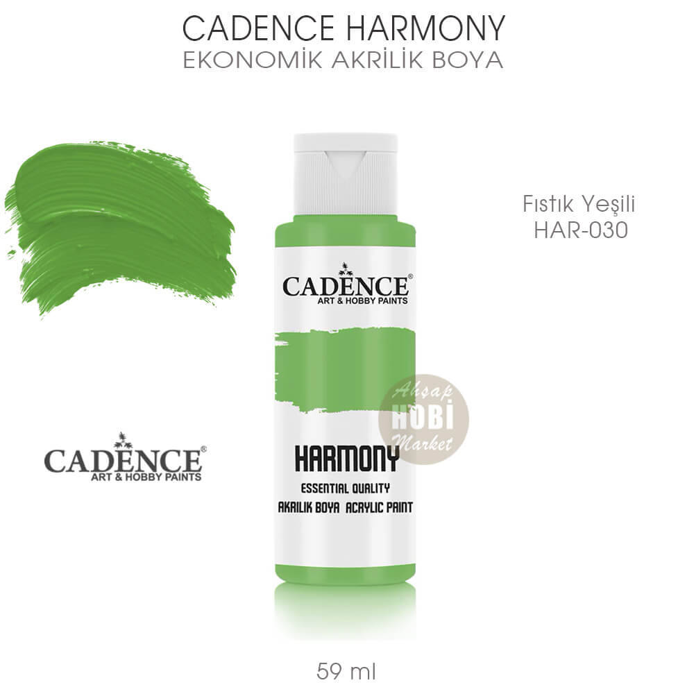 Cadence Fıstık Yeşili Renkli Harmony Ekonomik Akrilik Boya 59 ml ağırlığa sahip olup, kod numarası HAR030 dir.