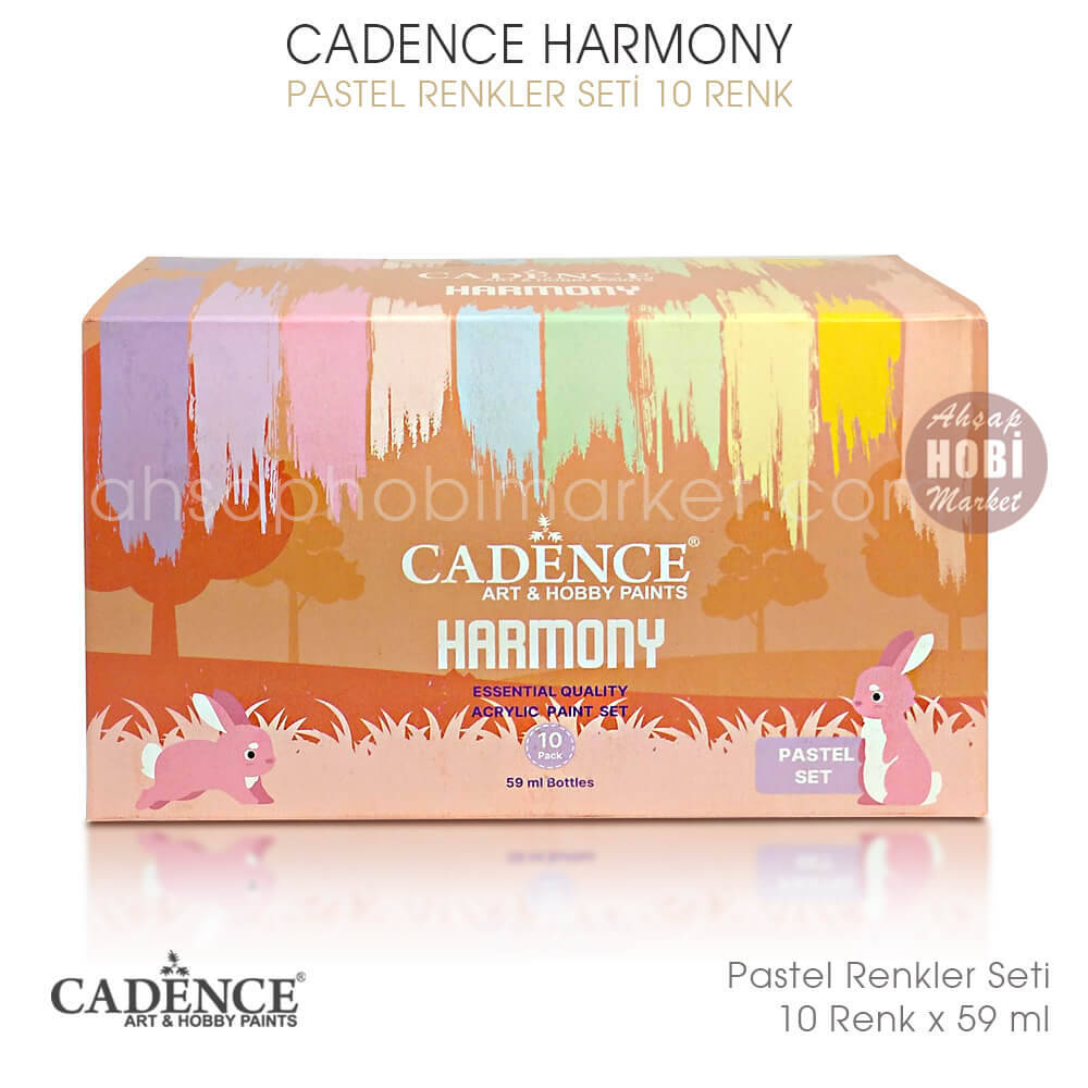 Cadence Harmony Ekonomik Akrilik Boya Seti, su bazlı ve sağlığa zararlı hiçbir toksik madde içermeyen, içerisinde 10 adet ham yüzeylere uygun pastel renkler içeren, akrilik boya setidir. Anaokulu, ilköğretim, lise öğrencileri ve sanatsal kullanıcılar için geliştirilmiş, kapatıcı yoğun pigmentli ekonomik bir boyadır. Yoğun pigment yapısıyla hobi boyama ile uğraşan herkes rahatlıkla kullanabilir. CE & EN 71 normlarına uygun olan Cadence Harmony Boyalar çocukların kullanımı için uygundur.