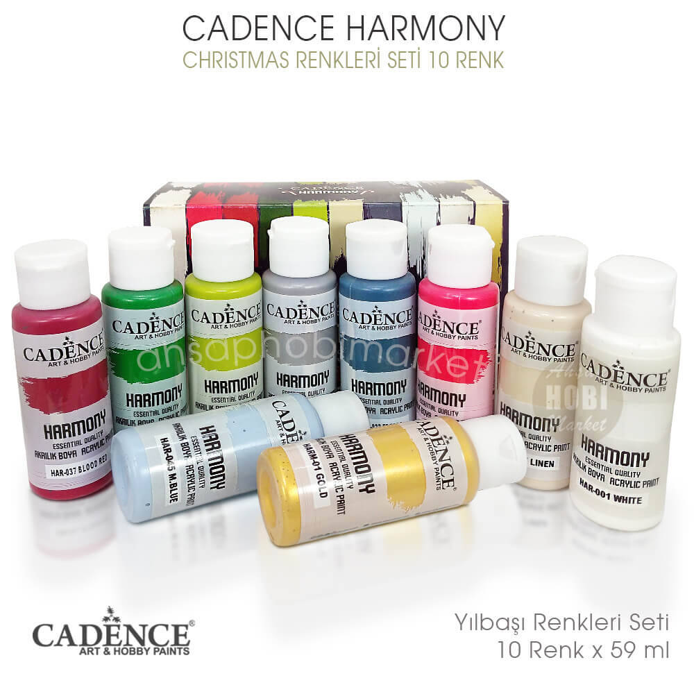 Harmony Opak Akrilik Boyalar, Cadence firması tarafından üretilmiş olup ham her türlü yüzey için uygundur. Dolayısıyla bu sette yer alan tüm boyalar ahşap, mdf, metal, seramik, cam, kumaş, plastik, duvar, strafor, karton, polyester, alçı, alçıpan, mum, tual, deri, craft kağıtları, kartonpiyer ..vb. tüm materyaller ve yüzeyler üzerinde kullanabilir. Harmony Boyalar su bazlı olmasından dolayı, Fırça ve el temizliği, su ve sabunla yapılabilir.