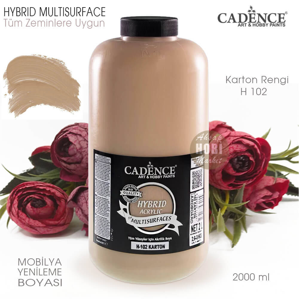 Cadence MultiSurface Karton Rengi Boyalar, iç ve dış mekanlar için, zırmaralamaya gerek olmaksızın her türlü zeminde astarsız kullanılabilen, su bazlı yeni nesil akrilik boyadır. Özellikle evlerdeki boyalı ve vernikli objeleri yenilemek için tercih edilen boyadır. Mobilya yenileme ve mobilya restorasyon boyası olarak da bilinir. Vernikli ve verniksiz tüm yüzeylerde kullanılabilir. Cadence Multisurface boyalar akıcı, tüm yüzeylere tutunabilen, astar ve zımpara gerektirmeyen boyadır.