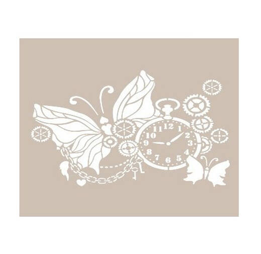 Cadence Kelebek ve Saat Temalı Stencil Şablon AS533