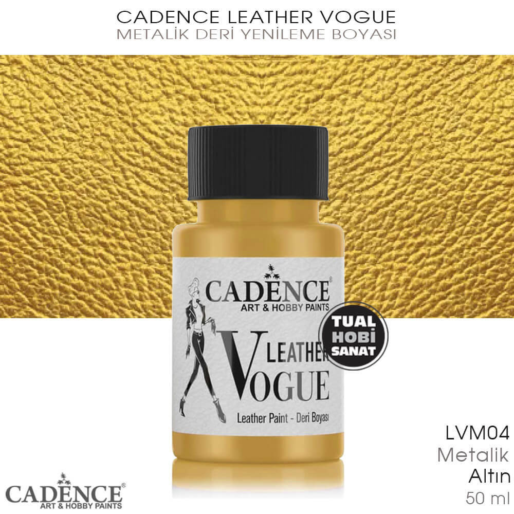 Gelince Haber VerCadence Leather Vogue Metalik Gold Altın Deri Boyaları, her türlü deri yüzeyde stencil yardımıyla veya serbest çalışma yaparak uygulanabilen, su bazlı ve yüksek kapatıcılığa sahip, kuruduktan sonra elastik kalabilen akrilik deri boyalarıdır. Cadence Leather Vogue deri boyalarıyla ayakkabı, çanta, cüzdan, kemer, sandalye kılıfı gibi tüm deri yüzeyli objeleri yeniliyebilir, rengini değiştirebilir veya üzerine desen çalışması yapabilirsiniz.