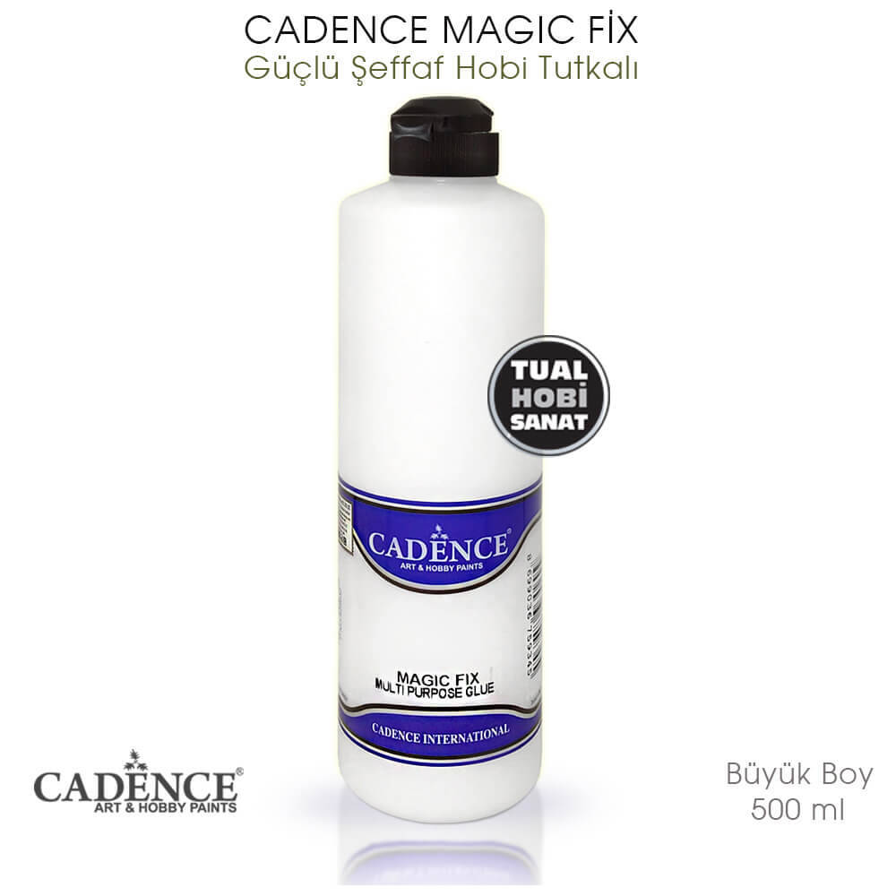 Cadence Magic Fix Tutkal, sürüldüğünde beyaz gözükmesine rağmen kuruyunca tamamen şeffaflaşır. Dolayısıyla kullandığınız yüzeylerde tutkal izleri bıraksanız dahi bunlar kuruyunca gözükmez, ayrıca gözüken tutkallı yüzeyler rahatlıkla boya tutar. Su bazlı olmasından dolayı yapıştırma artıklarını nemli bir bez ile kurumadan direkt silebilirsiniz. Dolayısıyla piyasada bulunan beyaz tutkallardan farklı, özel bir yapıştırıcıdır. İçerisinde sağlığa zararlı toksik madde yoktur ve su bazlıdır. Dolayısıyla çocukların ev ve okul faaliyetlerinde rahatlıkla kullanılabilir.