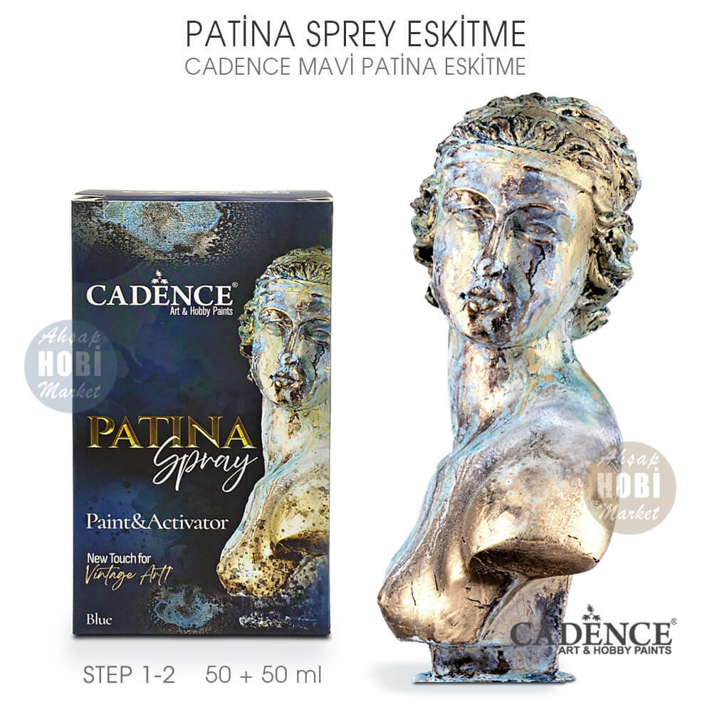 Gelince Haber VerCadence Patina Sprey Eskitme Efekti Boyaları, yüzeyleri matalik ve yaldızlı boyalar ile boyanmış ve isteğe göre varak uygulaması yapılmış objeleri, eskimiş ve yıllanmış görünüm vermek amacıyla kullanılan, 2 adımlı efekt boyasıdır. Patina sprey boyalar kullanılan renge göre paslı, küflü, eskimiş, korezyona uğramış ve oksitlenmiş gözükmesini sağlamaktadır. Son yılların en önemli dekorasyon tarzlarından biri olan paslı ve küflü görünümlü objeler elde etmek için kullanılan patina sprey boyaları, stencil ile de kullanbmaya uygundur.