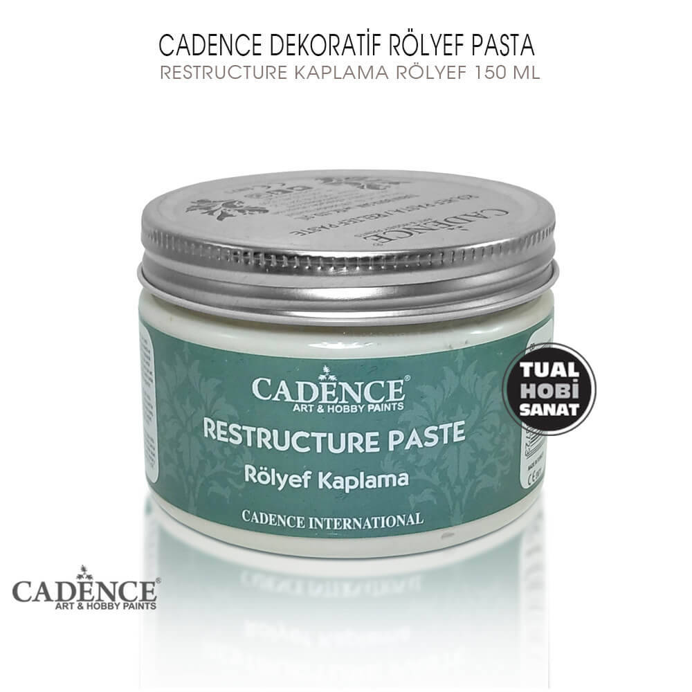 Cadence Restructure Kaplama Rölyef Pasta, her türlü yüzeyde, stencil, şablon ve pastacı şablonları kullanılarak, bozuk olan zeminleri düzeltme işlemlerinde kullanılan, üst düzey ve kolay kullanımlı bir rölyef macundur. Cadence Restructure Kaplama Rölyef Pasta, hobi projelerinde boşlukları ve bozuk zeminleri kolayca doldurabilmesi sayesinde yeni bir çığır açmıştır.
