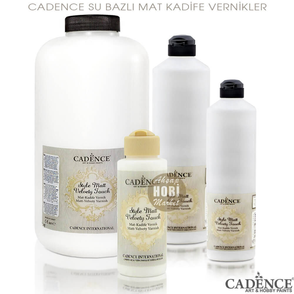 Cadence Su Bazlı Mat Kadife Vernikler, ışığı yansıtmayan, ultra mat ve dokunulduğunda kadifemsi bir yüzey elde etmek istenilen hobi projelerinde tercih edilir. Tercihen iki kat uygulanan cadence kadife vernikler, sürüldüğü yüzeyde yüksek kalitede koruma ve su geçirmez bir film tabakası oluşturur.