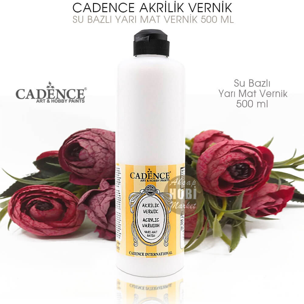 Cadence su bazlı yarı mat vernikler, içerisinde sağlığa zararlı toksik madde bulunmayan, kokusuz, CE belgeli, Anaokul ve İlkokul faaliyet projelerinde çocukların kullanımına uygun olup, parlatma ve boyayı koruma amaçlı olarak kullanılır. Su bazlı vernikler genellikle iki kat olarak uygulanır. İhtiyaç hissedildiği taktirde 3 kat olarak da uygulanabilir. Katlar arasında yüzeyin kuruması için en az 1 saat beklenmelidir. Ev mobilya boyamalarında katlar arasında 1 gün beklenmesi tavsiye edilmektedir.