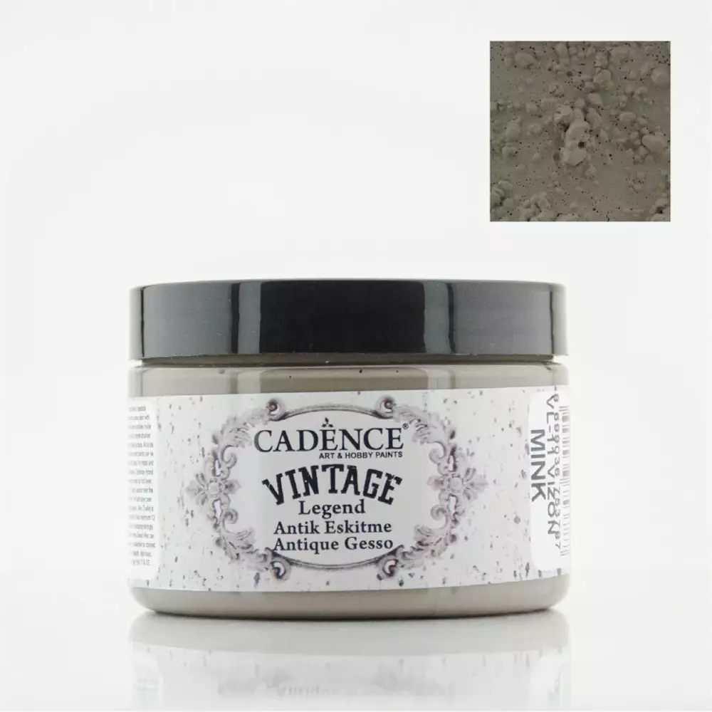 Cadence Vintage Eskitme Boyası, 13 farklı renk seçeneği ile objeye antik ve vintage görünüm kazandırmak amacıyla üretilmiş olup istenilen tüm cadence su bazlı boyaların üzerine uygulanabilir. Herhangi bir yüzeye ilk kat olarak uygulanmaz. Koyu kıvamlı bir boya olan Cadence Vintage Legend, yüzeye fırça ile sürülür. Ham yüzeylere sürülmemelidir.
