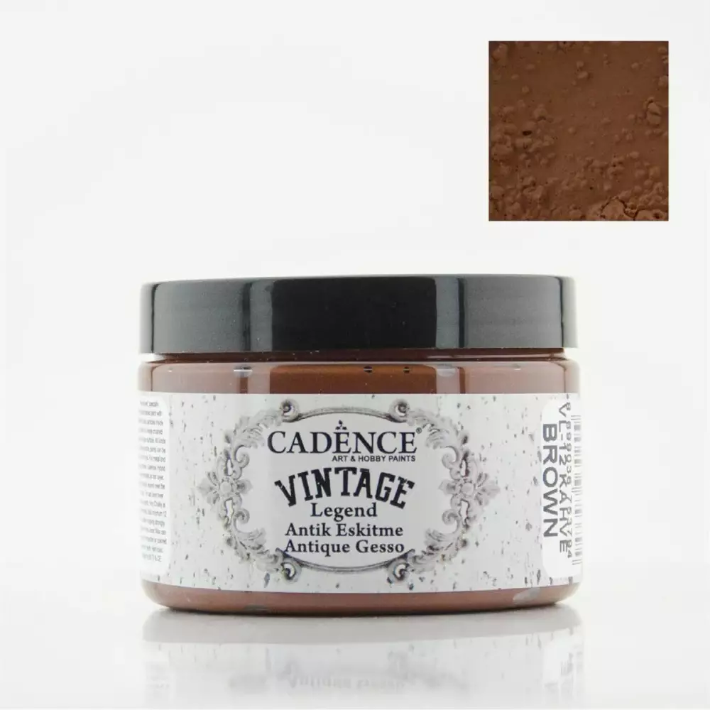 Cadence Vintage Eskitme Boyası, 13 farklı renk seçeneği ile objeye antik ve vintage görünüm kazandırmak amacıyla üretilmiş olup istenilen tüm cadence su bazlı boyaların üzerine uygulanabilir. Herhangi bir yüzeye ilk kat olarak uygulanmaz. Koyu kıvamlı bir boya olan Cadence Vintage Legend, yüzeye fırça ile sürülür. Ham yüzeylere sürülmemelidir.