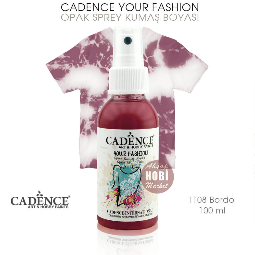 Cadence Sprey Kumaş Boyaları, 100 ml'lik ambalajında üretilmiş olup, su bazlıdır. Sağlığa zararlı hiçbir toksik madde içermez. Yaptığınız ürünleri gönül rahatlığı ile kullanabilir, sevdiklerinize hediye edebilirsiniz.
