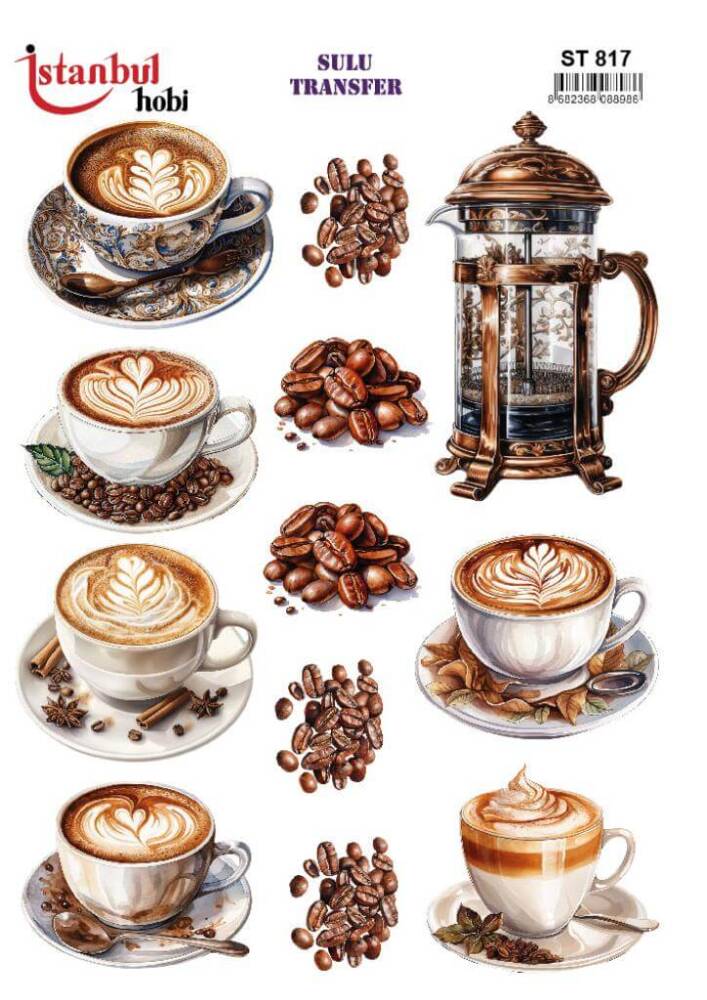 Sulu Transfer Kağıdı model STİ - 0817, her türlü hobi projesinde kullanılabilen, kendinden yapışkanlı, yapıştırıldığı yüzeyde hava kabarcığı bırakmayan, birinci kalite transfer kağıdıdır. Transfer Kağıtlarının üzerlerindeki desenler, kullanıldığı ürünün görkemli ve üst düzey gözükmesini sağlamaktadır.