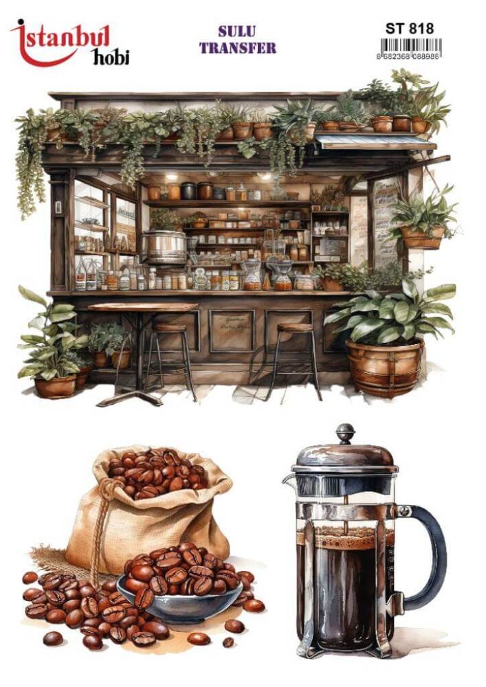 Sulu Transfer Kağıdı model STİ - 0818, her türlü hobi projesinde kullanılabilen, kendinden yapışkanlı, yapıştırıldığı yüzeyde hava kabarcığı bırakmayan, birinci kalite transfer kağıdıdır. Transfer Kağıtlarının üzerlerindeki desenler, kullanıldığı ürünün görkemli ve üst düzey gözükmesini sağlamaktadır.