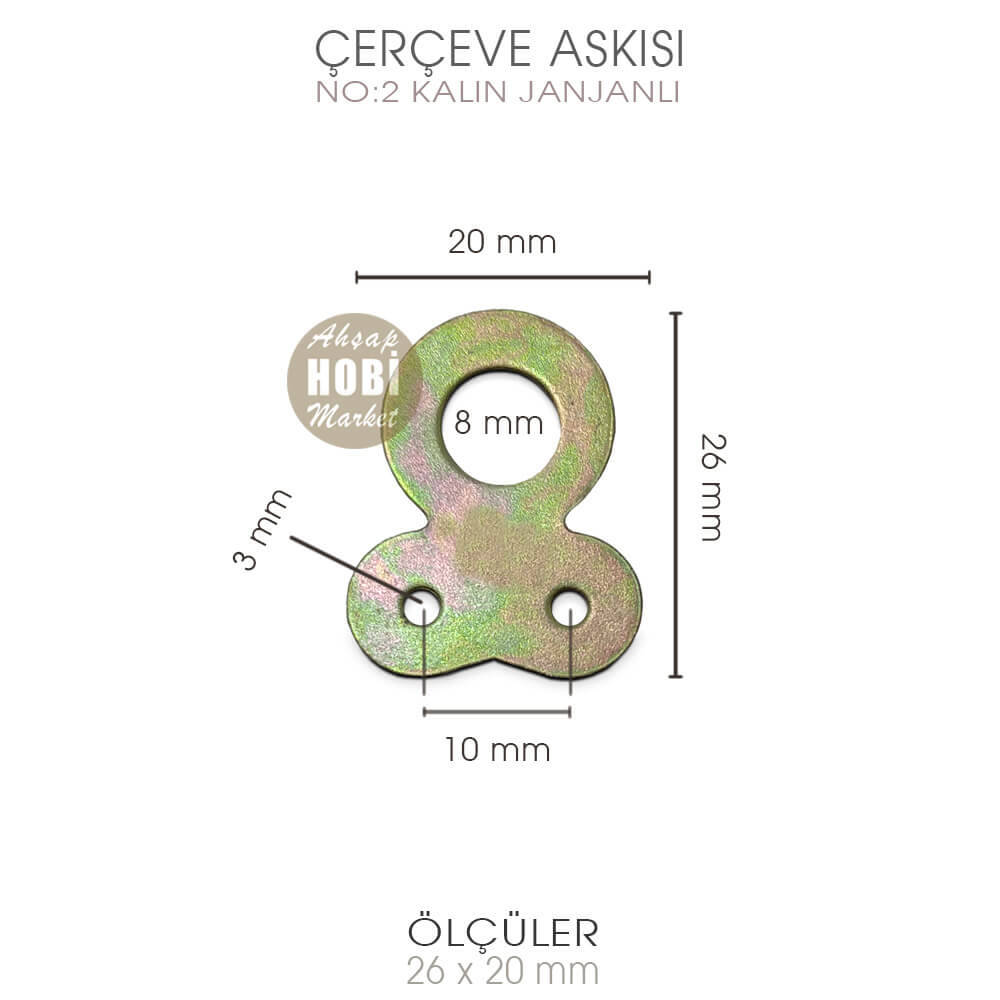 Çerçeve Askısı No:2 Kalın Modelin Yüksekliği 2,6 cm, genişliği 2 cm, vida deliği çapı ise 3 mm boyutundadır.