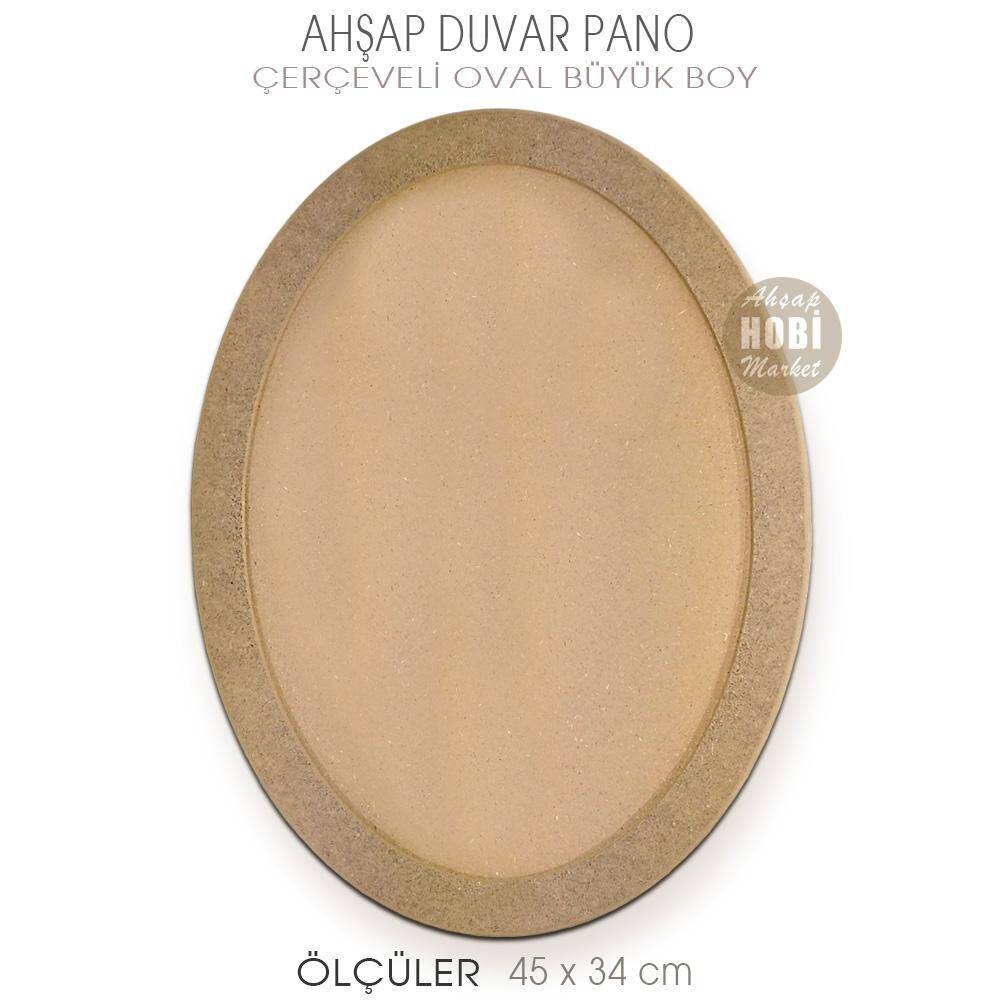 Ahşap çerçeveli büyük oval pano, özellikle oturma odası, salon, hol, bebek ve genç odası ile home ofis ve cafe dekorasyonunda sıklıkla kullanılmaktadır. Modası geçmeyecek bir tasarımdır. Her türlü eskitme tekniği uygulamaları, dekopaj, kokulu taş rölyef ve stencil uygulamalarında harika sonuçlar vermektedir.