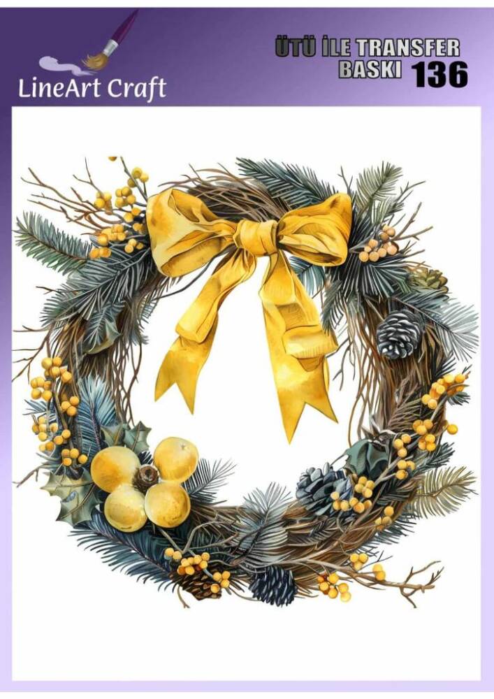 Çiçek Çelenk Kozalak Desenli Kumaş Transfer Kağıdı LNT-K136 (20x20 cm)