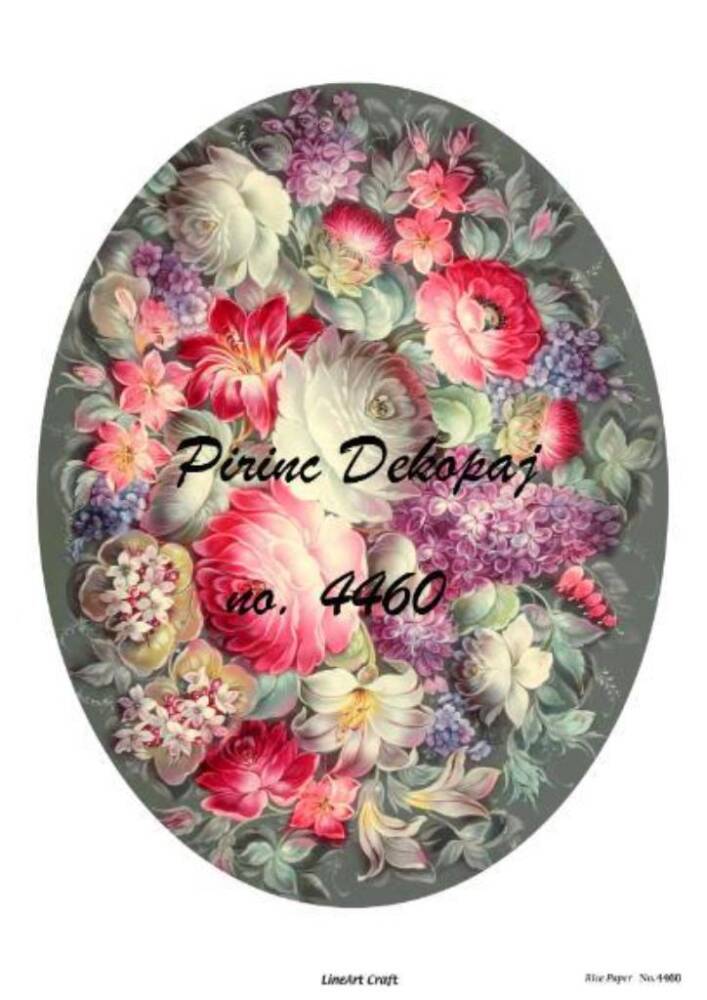 LineArt Ç,iç,ek Desenli Pirinç, Dekopaj, pirinç, ç,eltiğinden ü,retilmiş, her tü,rlü, hobi projesinde kullanılabilen, dekopaj tutkalı ile yapıştırılabilen, yapıştırıldığı yü,zeyde hava kabarcığı bırakmayan, birinci kalite dekopaj kağıdıdır. Pirinç, Dekopajların ü,zerleindeki desenler, kullanıldığı ü,rü,nü,n gö,rkemli ve ü,st dü,zey gö,zü,kmesini sağlamaktadır.