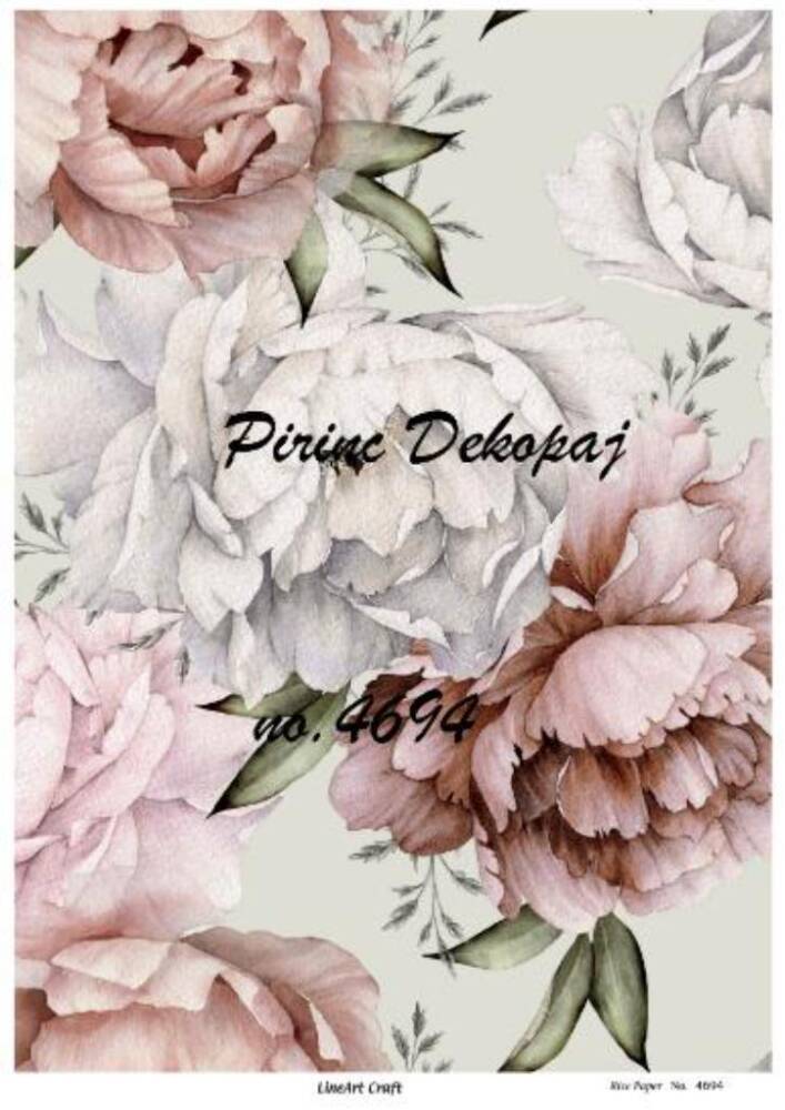LineArt Ç,iç,ek Desenli Pirinç, Dekopaj - Model : 4694 , pirinç, ç,eltiğinden ü,retilmiş, her tü,rlü, hobi projesinde kullanılabilen, dekopaj tutkalı ile yapıştırılabilen, yapıştırıldığı yü,zeyde hava kabarcığı bırakmayan, birinci kalite dekopaj kağıdıdır. Pirinç, Dekopajların ü,zerleindeki desenler, kullanıldığı ü,rü,nü,n gö,rkemli ve ü,st dü,zey gö,zü,kmesini sağlamaktadır.