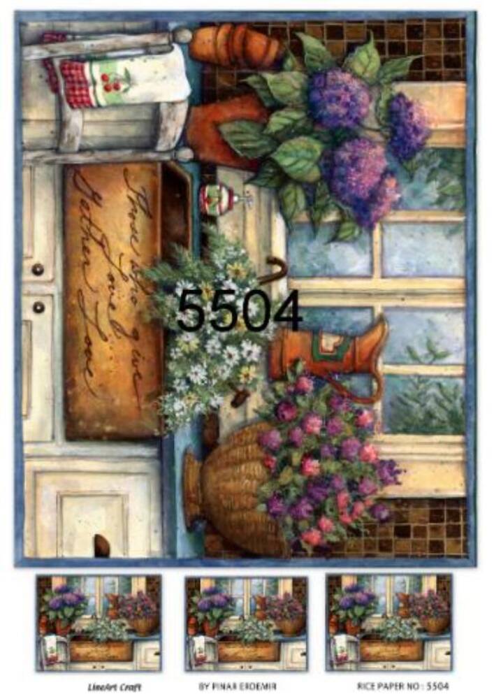 LineArt Ç,iç,ek Desenli Pirinç, Dekopaj - Model : 5504 , pirinç, ç,eltiğinden ü,retilmiş, her tü,rlü, hobi projesinde kullanılabilen, dekopaj tutkalı ile yapıştırılabilen, yapıştırıldığı yü,zeyde hava kabarcığı bırakmayan, birinci kalite dekopaj kağıdıdır. Pirinç, Dekopajların ü,zerleindeki desenler, kullanıldığı ü,rü,nü,n gö,rkemli ve ü,st dü,zey gö,zü,kmesini sağlamaktadır.