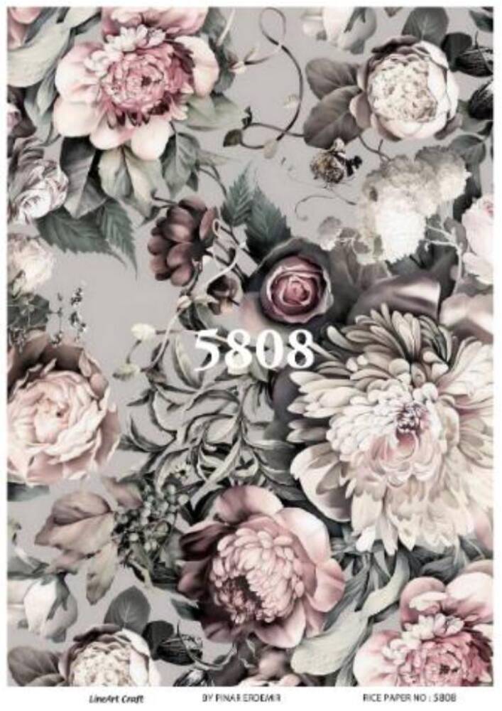 LineArt Ç,iç,ek Desenli Pirinç, Dekopaj - Model :5808 , pirinç, ç,eltiğinden ü,retilmiş, her tü,rlü, hobi projesinde kullanılabilen, dekopaj tutkalı ile yapıştırılabilen, yapıştırıldığı yü,zeyde hava kabarcığı bırakmayan, birinci kalite dekopaj kağıdıdır. Pirinç, Dekopajların ü,zerleindeki desenler, kullanıldığı ü,rü,nü,n gö,rkemli ve ü,st dü,zey gö,zü,kmesini sağlamaktadır.