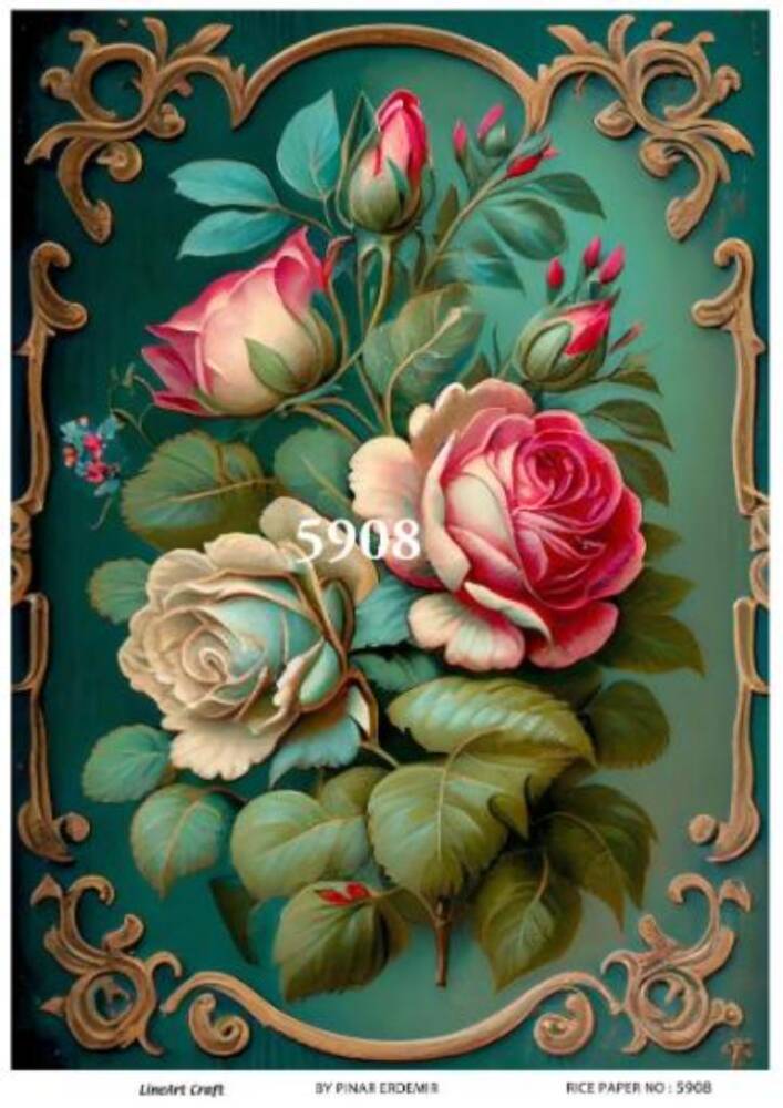 LineArtÇ,iç,ek , Desenli Pirinç, Dekopaj - Model : 5908 , pirinç, ç,eltiğinden ü,retilmiş, her tü,rlü, hobi projesinde kullanılabilen, dekopaj tutkalı ile yapıştırılabilen, yapıştırıldığı yü,zeyde hava kabarcığı bırakmayan, birinci kalite dekopaj kağıdıdır. Pirinç, Dekopajların ü,zerleindeki desenler, kullanıldığı ü,rü,nü,n gö,rkemli ve ü,st dü,zey gö,zü,kmesini sağlamaktadır.
