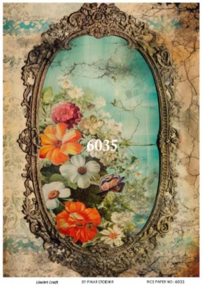 LineArt , Ç,iç,ek , Desenli Pirinç, Dekopaj - Model :6035 , pirinç, ç,eltiğinden ü,retilmiş, her tü,rlü, hobi projesinde kullanılabilen, dekopaj tutkalı ile yapıştırılabilen, yapıştırıldığı yü,zeyde hava kabarcığı bırakmayan, birinci kalite dekopaj kağıdıdır. Pirinç, Dekopajların ü,zerleindeki desenler, kullanıldığı ü,rü,nü,n gö,rkemli ve ü,st dü,zey gö,zü,kmesini sağlamaktadır.