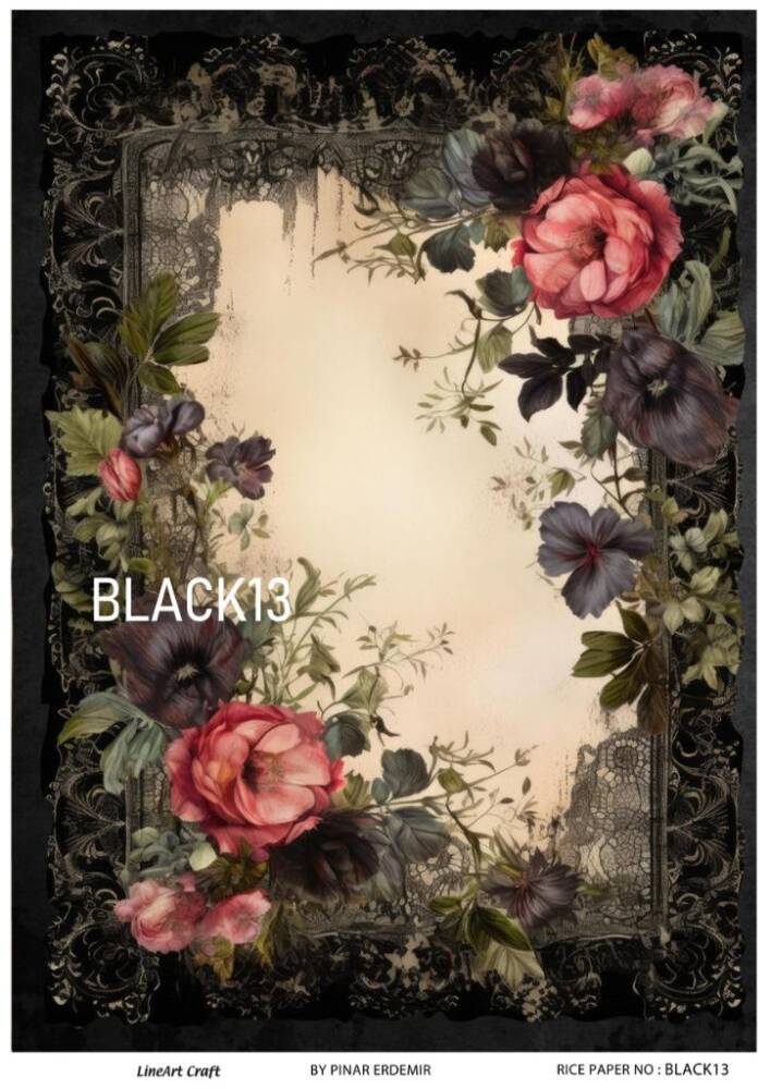 LineArt ,Ç,iç,ek ,Desenli Pirinç, Dekopaj - Model : BLACK13 , pirinç, ç,eltiğinden ü,retilmiş, her tü,rlü, hobi projesinde kullanılabilen, dekopaj tutkalı ile yapıştırılabilen, yapıştırıldığı yü,zeyde hava kabarcığı bırakmayan, birinci kalite dekopaj kağıdıdır. Pirinç, Dekopajların ü,zerleindeki desenler, kullanıldığı ü,rü,nü,n gö,rkemli ve ü,st dü,zey gö,zü,kmesini sağlamaktadır.