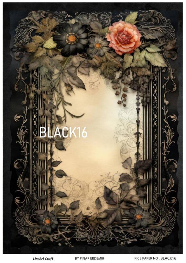 LineArt  ,Ç,iç,ek ,Desenli Pirinç, Dekopaj - Model :BLACK16 , pirinç, ç,eltiğinden ü,retilmiş, her tü,rlü, hobi projesinde kullanılabilen, dekopaj tutkalı ile yapıştırılabilen, yapıştırıldığı yü,zeyde hava kabarcığı bırakmayan, birinci kalite dekopaj kağıdıdır. Pirinç, Dekopajların ü,zerleindeki desenler, kullanıldığı ü,rü,nü,n gö,rkemli ve ü,st dü,zey gö,zü,kmesini sağlamaktadır.