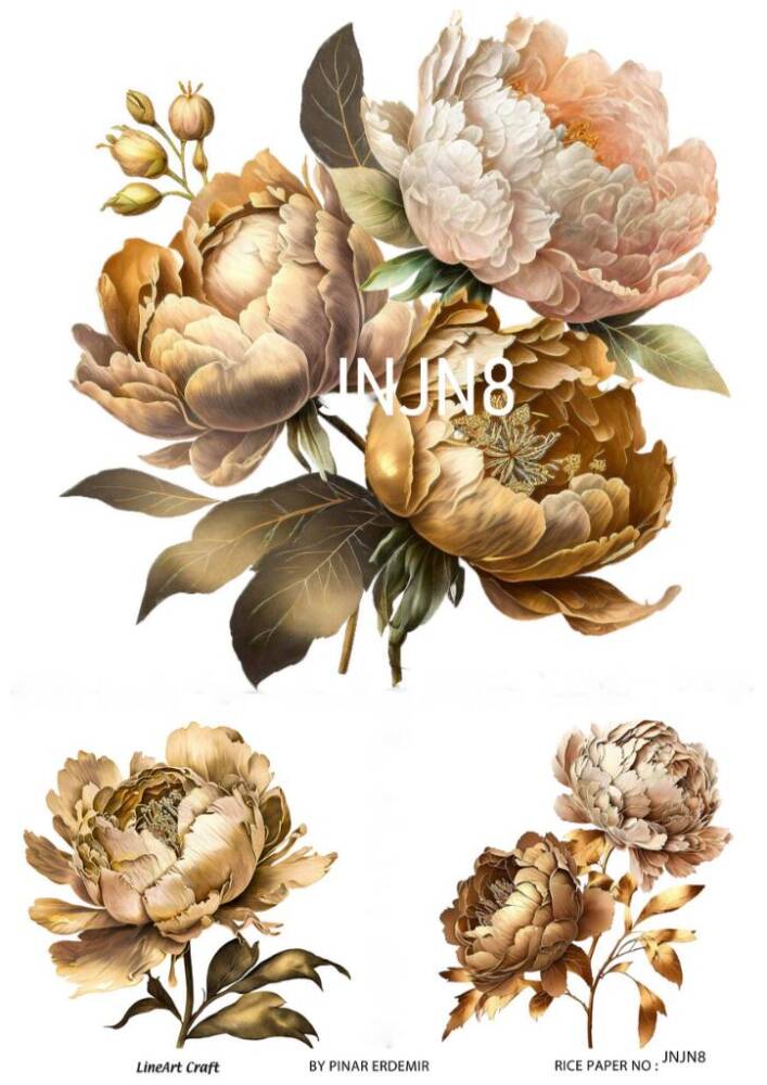 LineArtÇ,iç,ek , Desenli Pirinç, Dekopaj - Model : JNJN08 , pirinç, ç,eltiğinden ü,retilmiş, her tü,rlü, hobi projesinde kullanılabilen, dekopaj tutkalı ile yapıştırılabilen, yapıştırıldığı yü,zeyde hava kabarcığı bırakmayan, birinci kalite dekopaj kağıdıdır. Pirinç, Dekopajların ü,zerleindeki desenler, kullanıldığı ü,rü,nü,n gö,rkemli ve ü,st dü,zey gö,zü,kmesini sağlamaktadır.