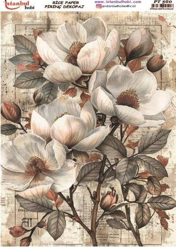 Ç,iç,ek Desenli Pirinç, Dekopaj - Model : PT 00560, pirinç, ç,eltiğinden ü,retilmiş, her tü,rlü, hobi projesinde kullanılabilen, dekopaj tutkalı ile yapıştırılabilen, yapıştırıldığı yü,zeyde hava kabarcığı bırakmayan, birinci kalite dekopaj kağıdıdır. Pirinç, Dekopajların ü,zerleindeki desenler, kullanıldığı ü,rü,nü,n gö,rkemli ve ü,st dü,zey gö,zü,kmesini sağlamaktadır.