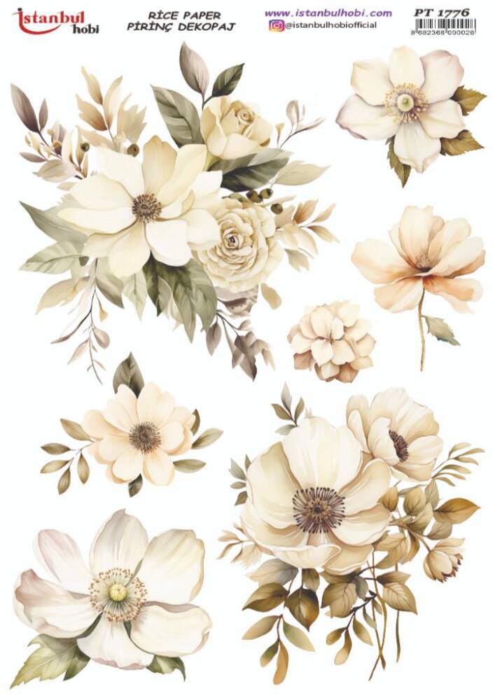 Ç,iç,ek , Desenli Pirinç, Dekopaj , , pirinç, ç,eltiğinden ü,retilmiş, her tü,rlü, hobi projesinde kullanılabilen, dekopaj tutkalı ile yapıştırılabilen, yapıştırıldığı yü,zeyde hava kabarcığı bırakmayan, birinci kalite dekopaj kağıdıdır. Pirinç, Dekopajların ü,zerleindeki desenler, kullanıldığı ü,rü,nü,n gö,rkemli ve ü,st dü,zey gö,zü,kmesini sağlamaktadır.