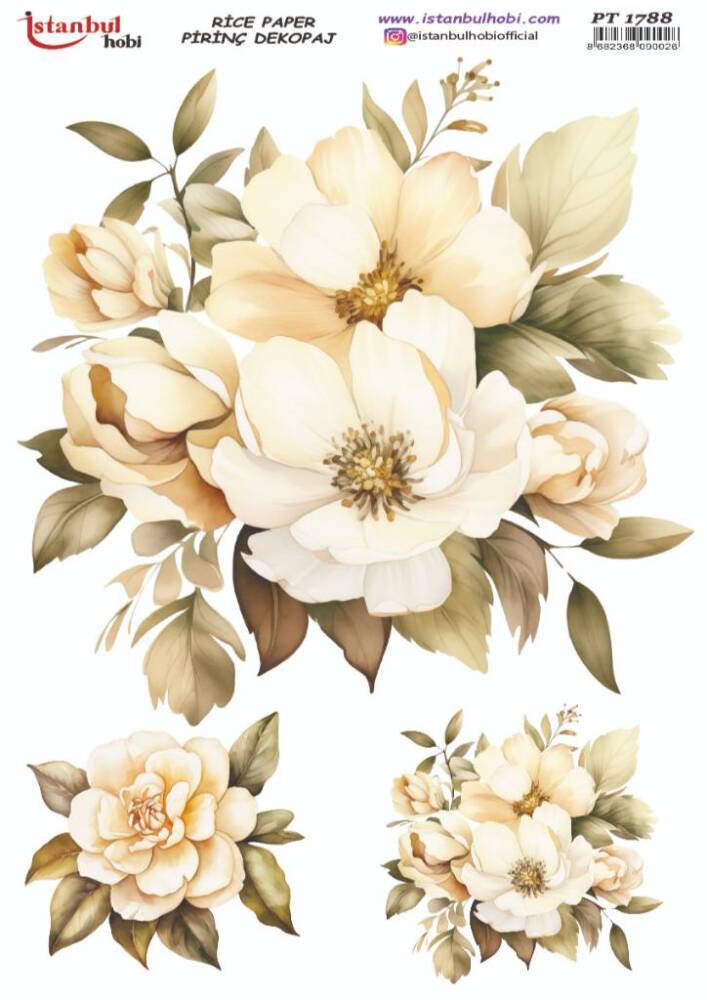 Ç,iç,ek Desenli Pirinç, Dekopaj - Model : PT 01788, pirinç, ç,eltiğinden ü,retilmiş, her tü,rlü, hobi projesinde kullanılabilen, dekopaj tutkalı ile yapıştırılabilen, yapıştırıldığı yü,zeyde hava kabarcığı bırakmayan, birinci kalite dekopaj kağıdıdır. Pirinç, Dekopajların ü,zerleindeki desenler, kullanıldığı ü,rü,nü,n gö,rkemli ve ü,st dü,zey gö,zü,kmesini sağlamaktadır.