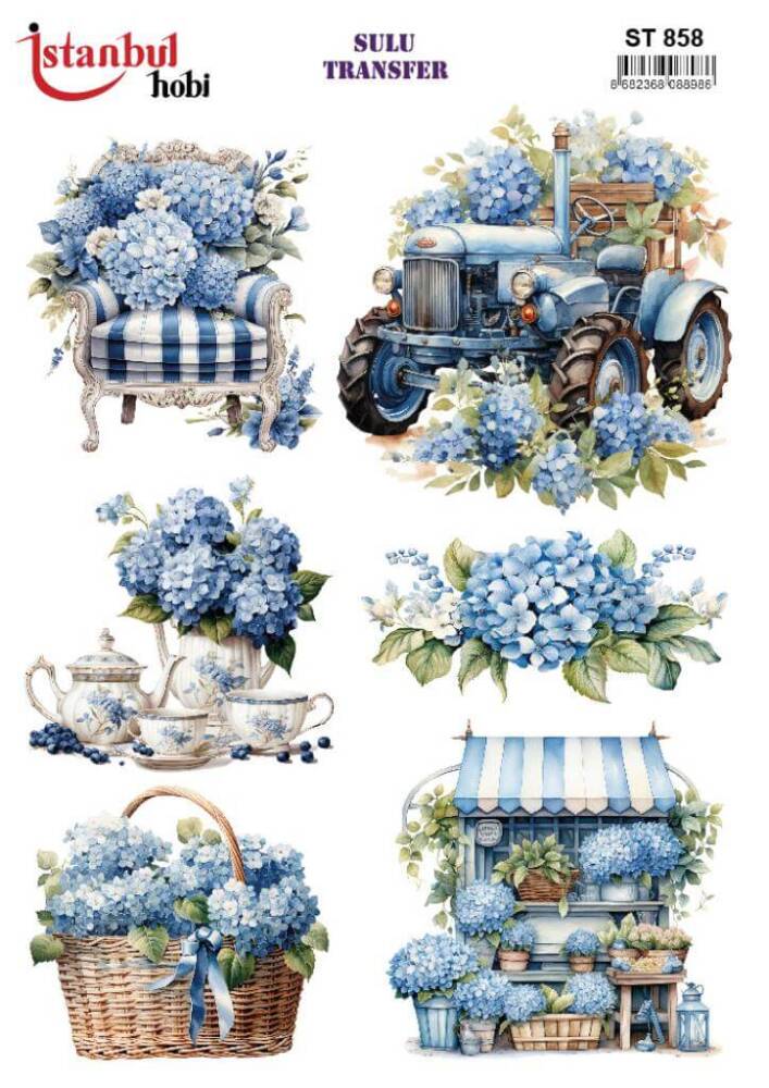 Sulu Transfer Kağıdı model STİ -858, her türlü hobi projesinde kullanılabilen, kendinden yapışkanlı, yapıştırıldığı yüzeyde hava kabarcığı bırakmayan, birinci kalite transfer kağıdıdır. Transfer Kağıtlarının üzerlerindeki desenler, kullanıldığı ürünün görkemli ve üst düzey gözükmesini sağlamaktadır.