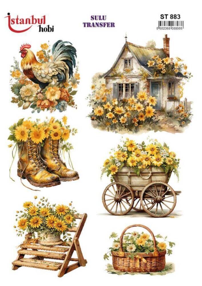 Sulu Transfer Kağıdı model STİ -883, her türlü hobi projesinde kullanılabilen, kendinden yapışkanlı, yapıştırıldığı yüzeyde hava kabarcığı bırakmayan, birinci kalite transfer kağıdıdır. Transfer Kağıtlarının üzerlerindeki desenler, kullanıldığı ürünün görkemli ve üst düzey gözükmesini sağlamaktadır.