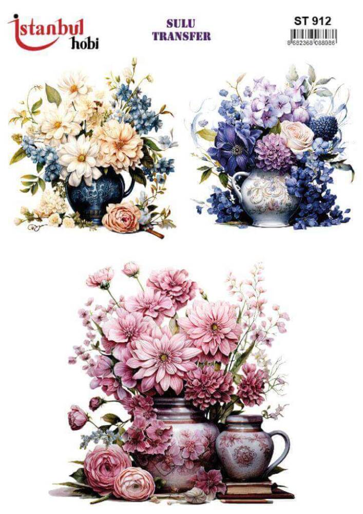 Gelince Haber VerÇiçek Desenli Sulu Transfer Kağıdı STI-912 Boyut (25x35cm)
