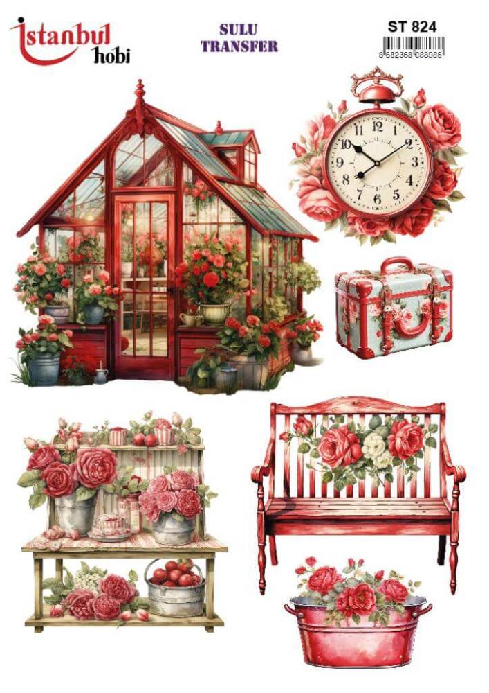 Sulu Transfer Kağıdı model STİ -824, her türlü hobi projesinde kullanılabilen, kendinden yapışkanlı, yapıştırıldığı yüzeyde hava kabarcığı bırakmayan, birinci kalite transfer kağıdıdır. Transfer Kağıtlarının üzerlerindeki desenler, kullanıldığı ürünün görkemli ve üst düzey gözükmesini sağlamaktadır.