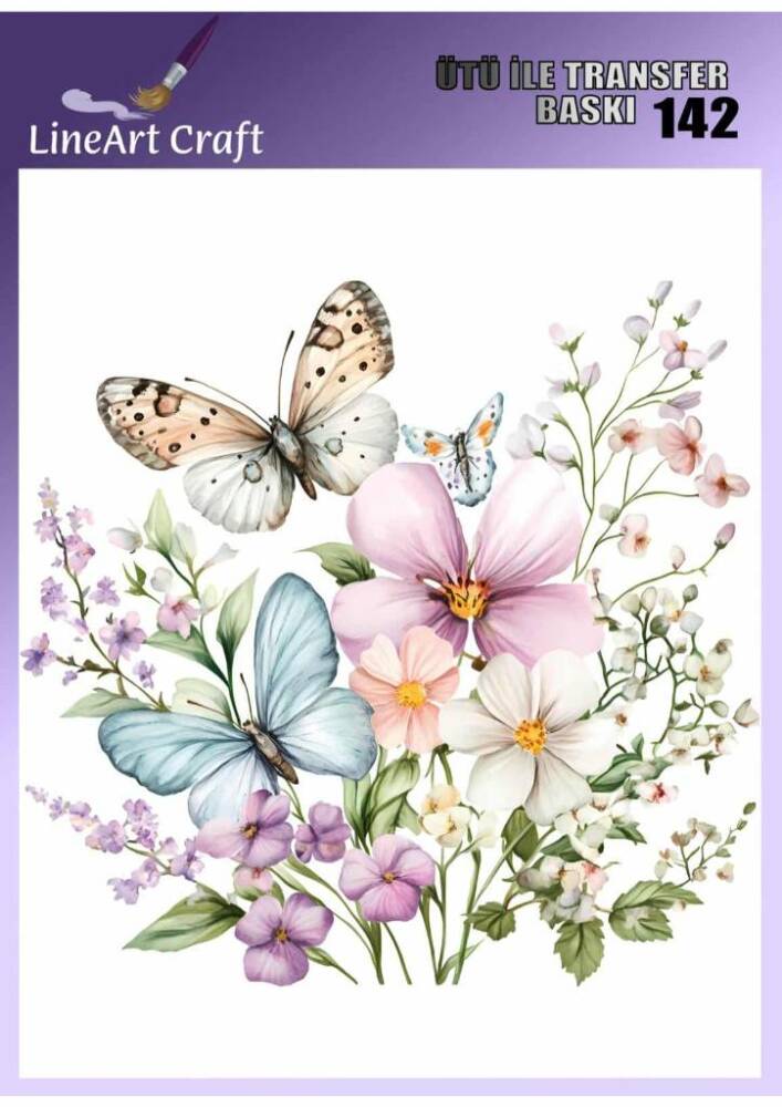 Çiçek Kelebek Desenli Kumaş Transfer Kağıdı LNT-K142 (20x20 cm)