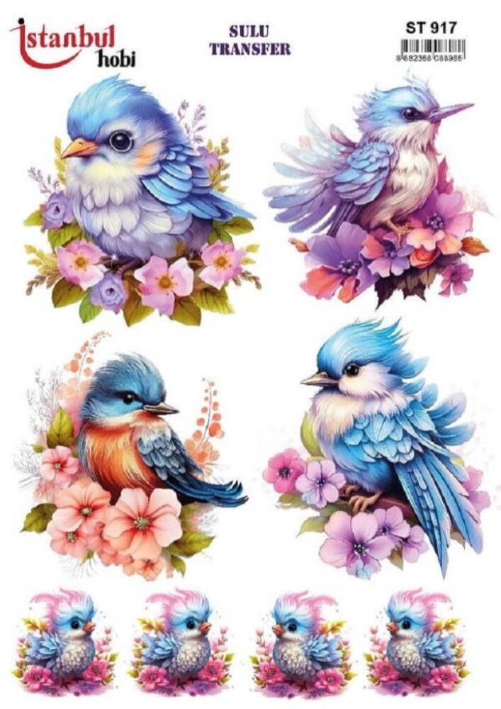 Çiçek Kuş Desenli Sulu Transfer Kağıdı STI-917