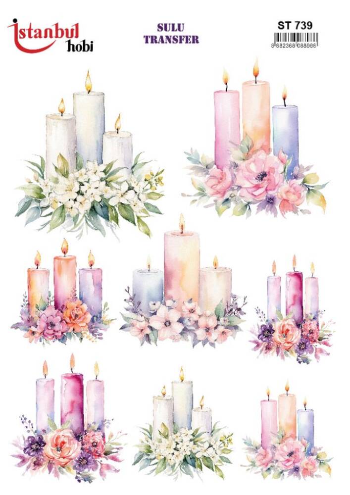 Gelince Haber VerÇiçek Mum Desenli Sulu Transfer Kağıdı STI-739 Boyut (25x35cm)