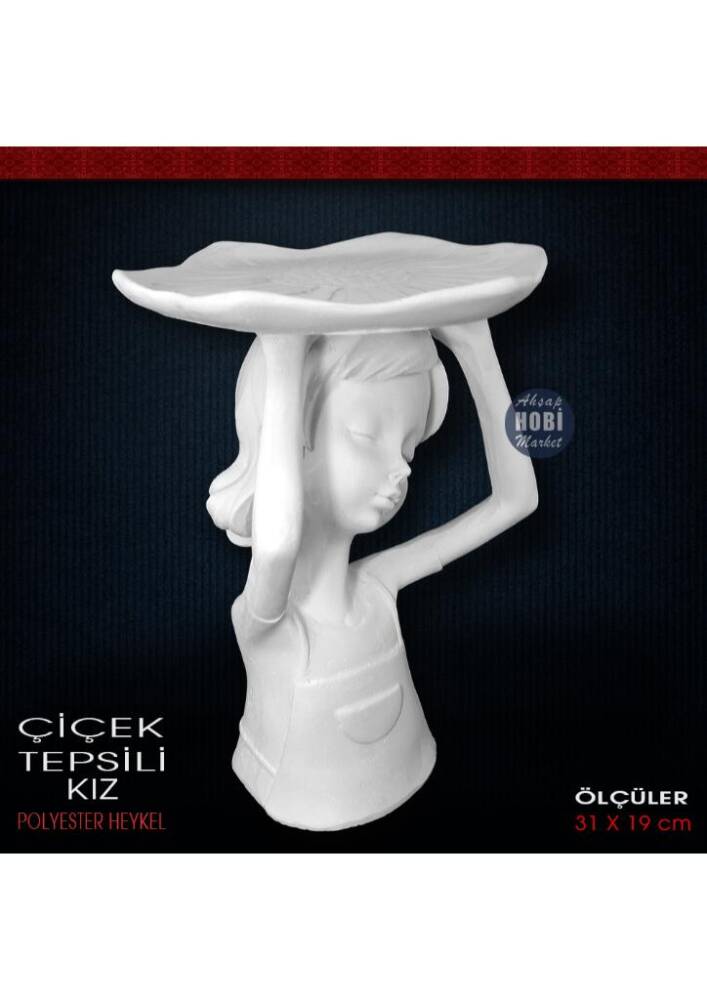 Polyester Çiçek Tepsili Kız, kendinden mükemmel desen ve detaylı, ahşap ve seramiğe göre daha kolay boyanabilien, tüm ev dekorasyonunda kullanabileceğiniz dekoratif gondol sunumluk aksesuar objedir. Birinci sınıf polyester malzemesiyle dökülmüş, pürüzsüz ve boyamaya hazır, polyester tabağıyla birlikte her türlü akrilik ve sentetik boyayla boyanabilen, uzun ömürlü dekoratif ve işlevsel bir üründür.