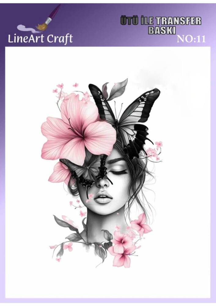 Çiçek ve Kadın Desenli Kumaş Transfer Kağıdı LNT-K011 (20x20 cm)