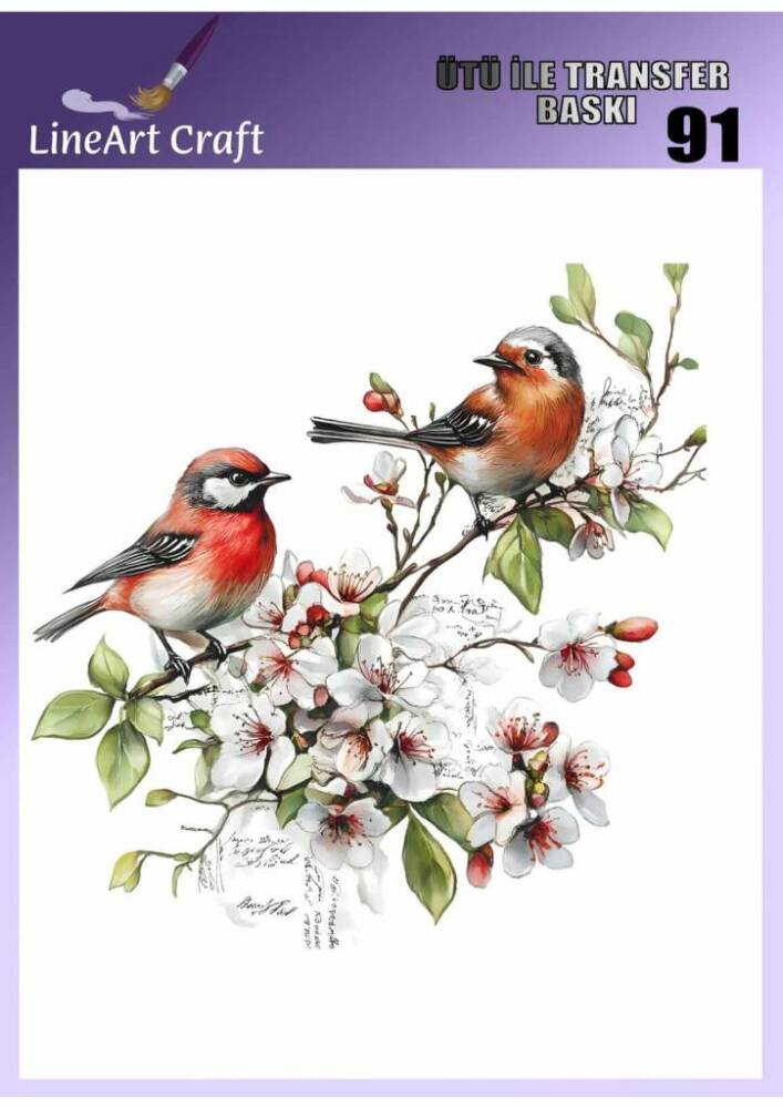 Çiçek ve Kuş Desenli Kumaş Transfer Kağıdı LNT-K091 (20x20 cm)