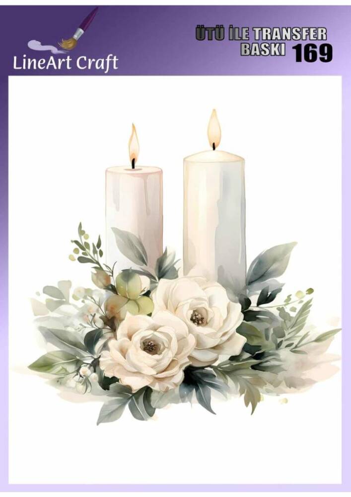 Çiçek ve Mum Desenli Kumaş Transfer Kağıdı LNT-K169 (20x20 cm)
