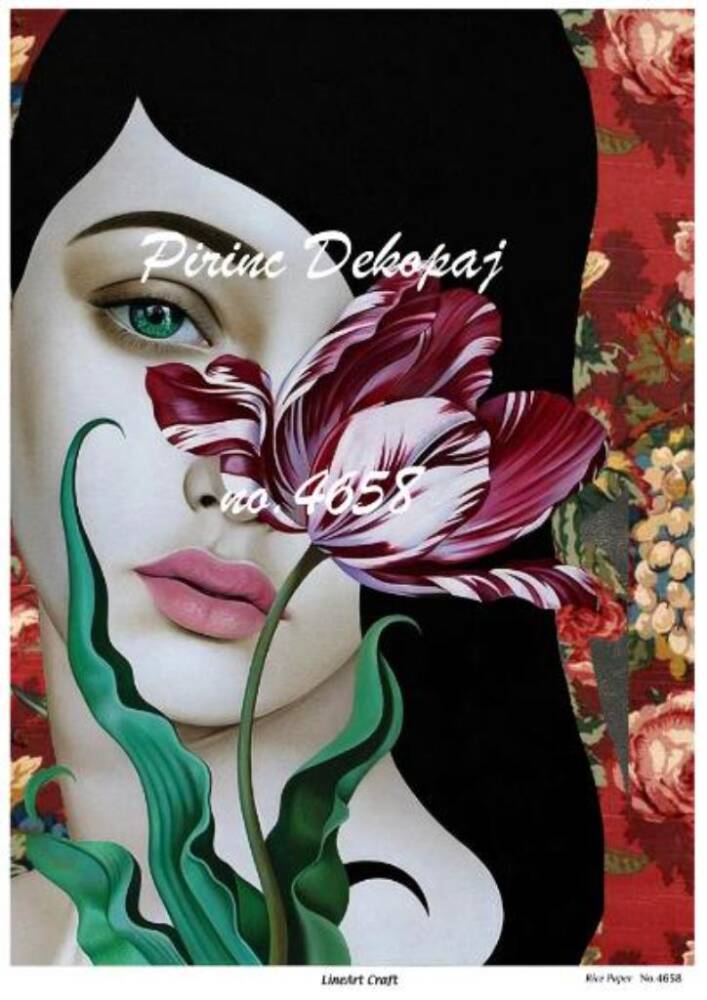 Çiçekli Kadın Figürlü Pirinç Dekopaj Model : 4658