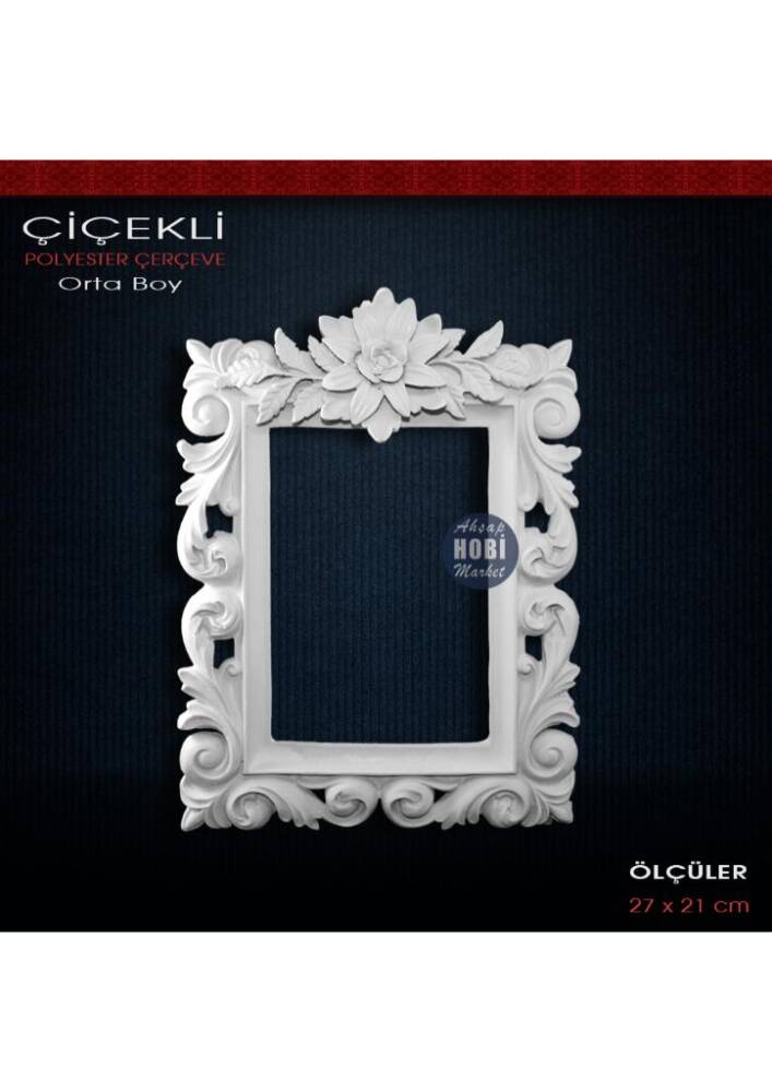 Çiçekli Kalın Çerçeve Orta Boy (27X21cm) Ham Polyester