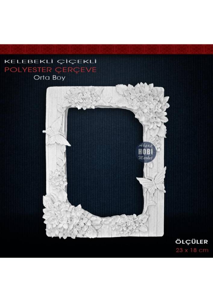 Çiçekli Vintage Çerçeve Orta Boy (25X21cm) Ham Polyester