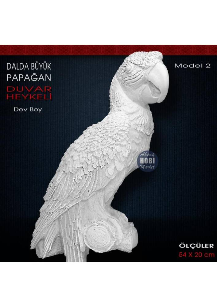 Polyester Büyük Duvar Papağanı Model 2, birinci kalite polyesterden, 3 boyutlu olarak özel makinalarda dökülmüş, klasik, avangarde ve modern başta olmak üzere her tür dekorasyon trendine uygun olarak boyanabilecek, hatasız ve mükemmel detaylı, duvara veya panolara asılarak kullanılan, tok görünümlü, içi dolu, polyester aksesuar objedir. Taş tozundan veya silikon kalıba dökülerek yapılan objelerden değildir. Ağır ve tok bir görünüme sahiptir.