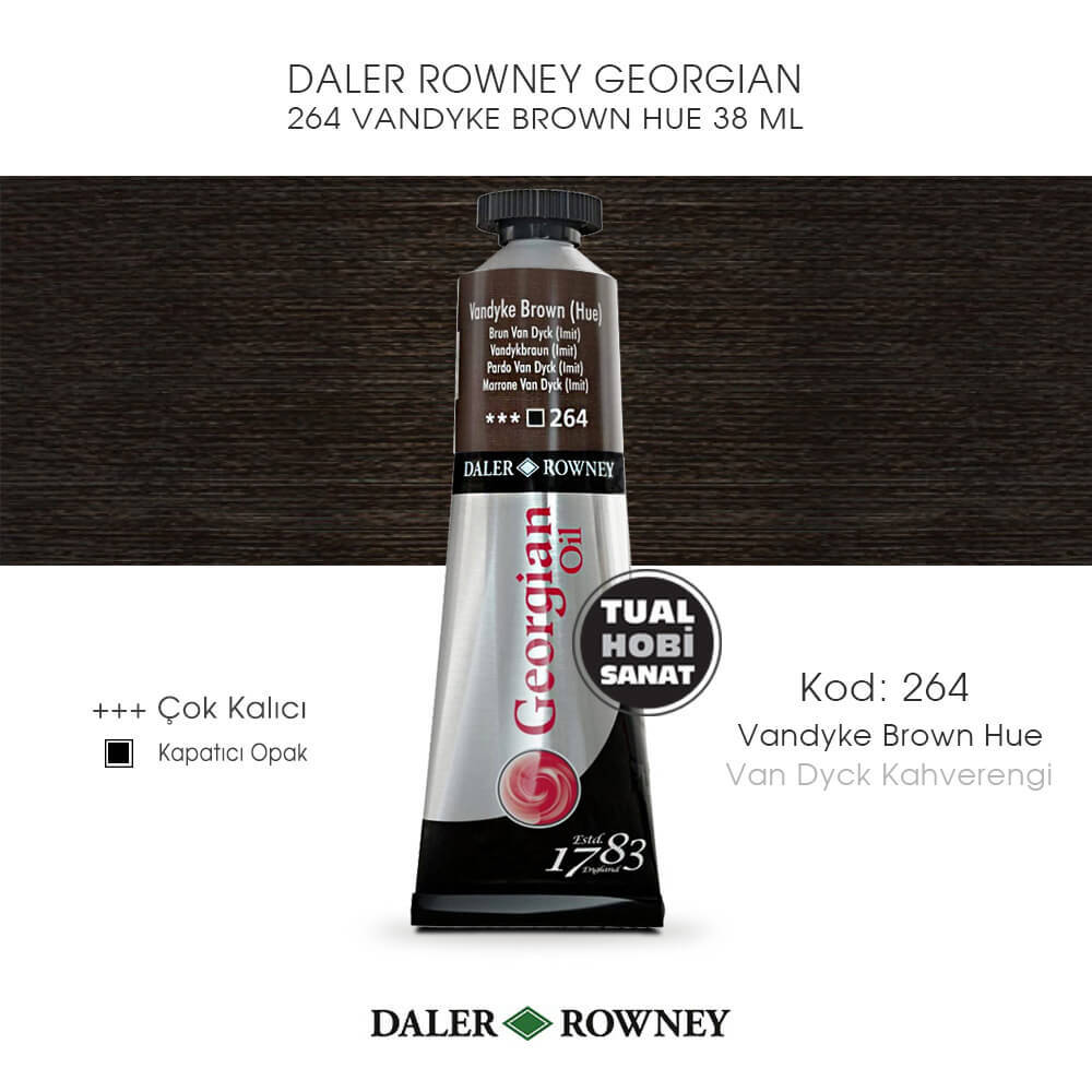 Vandyke Brown rengi Georgian yağlı boyalar, pürüzsüz parlak yüzeyli, örtücülük, kalıcılık ve doygunluk konusunda üst segment, yıllar boyunca sararma ve solma yapmayan, çok hızlı kuruma yapmayan dolayısıyla resim üzerinde ressama yeteri kadar çalışma zamanı tanıyan, resim bittiğinde özel sprey verniklerle kolaylıkla koruma sağlayabileceğiniz, tüm renklerin birbiri ile karıştırılabilip istediğiniz tonlara kolayca ulaşabileceğiniz kaliteli boyalardır.