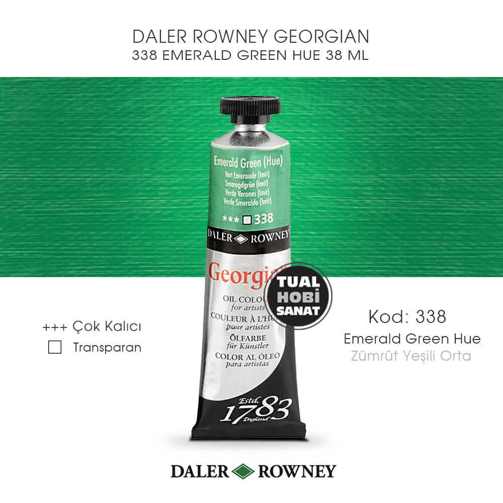 Emerald Green Hue 338 Rengi Daler Rowney Yağlı Boyalar 38 ml miktarında tüplerde satışa sunulmuştur.