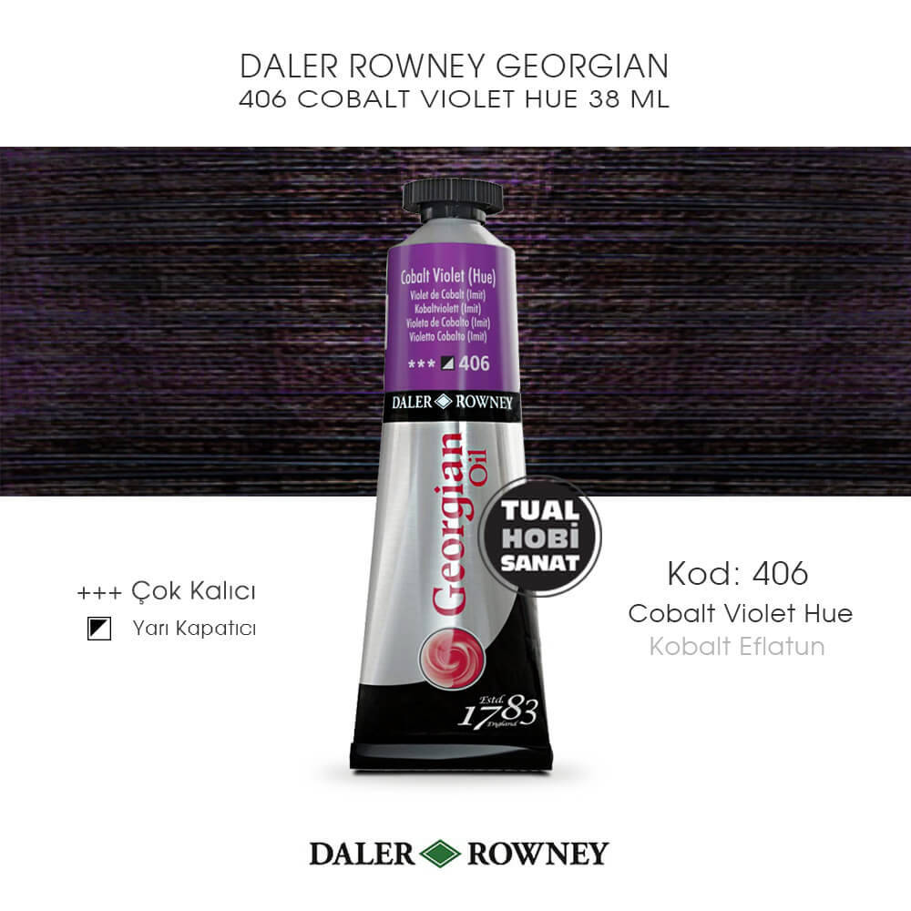 Daler Rowney Georgian Yağlı Boyalar, 24 tek pigment renginde, 31 opak ve yarı opak renginde toplam 54 renk seçeneği ile satışa sunulmaktadır. Tüm renkler keskin fırça darbelerine imkan vermekle birlikte spatula veya fırçalar ile rahatlıkla kullanılabilir. Boyalar kururken renk tonlarında değişiklik olmaz. Kremimsi yapıda olan Georgian Kobalt Eflatun Yağlı Boyaları, kullanım amacınıza bağlı olarak kokusuz terebentin veya keten yağı ile kolayca inceltebilirsiniz.