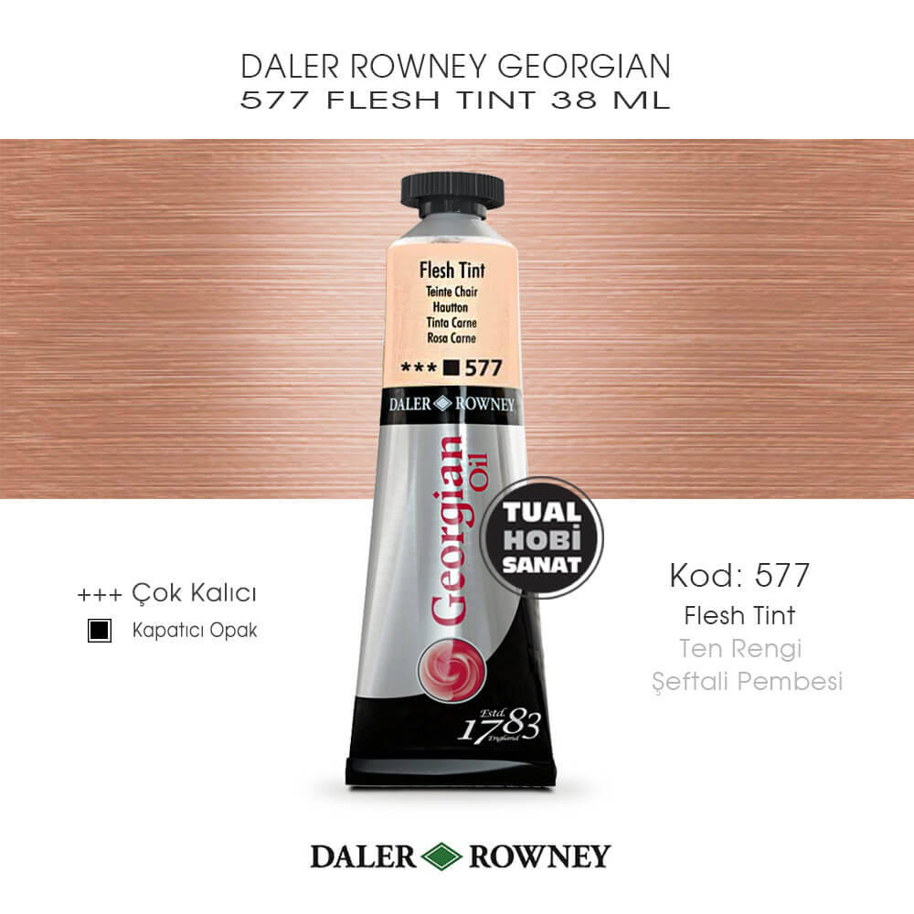 Flesh Tint 577 Rengi Daler Rowney Yağlı Boyalar 38 ml miktarında tüplerde satışa sunulmuştur. Ürün ülkemizde şeftali pembesi olarak da bilinir.
